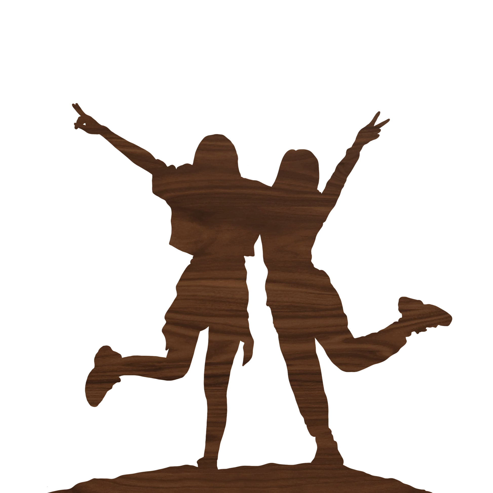 Single 3" hand-drawn, laser-cut walnut silhouette with peel-and-stick backing.