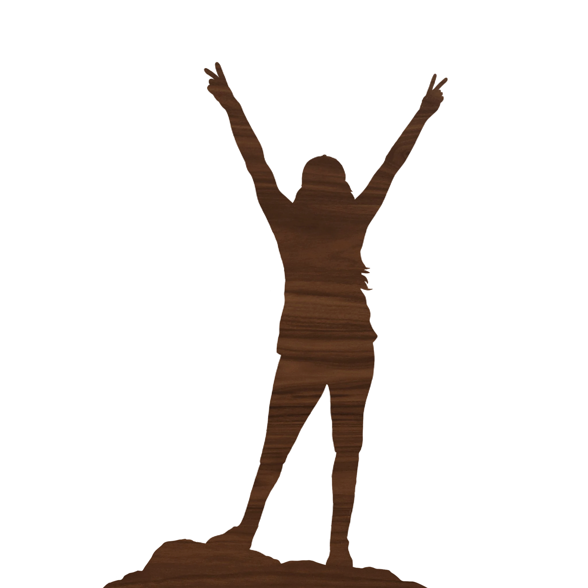 Single 3" hand-drawn, laser-cut walnut silhouette with peel-and-stick backing.