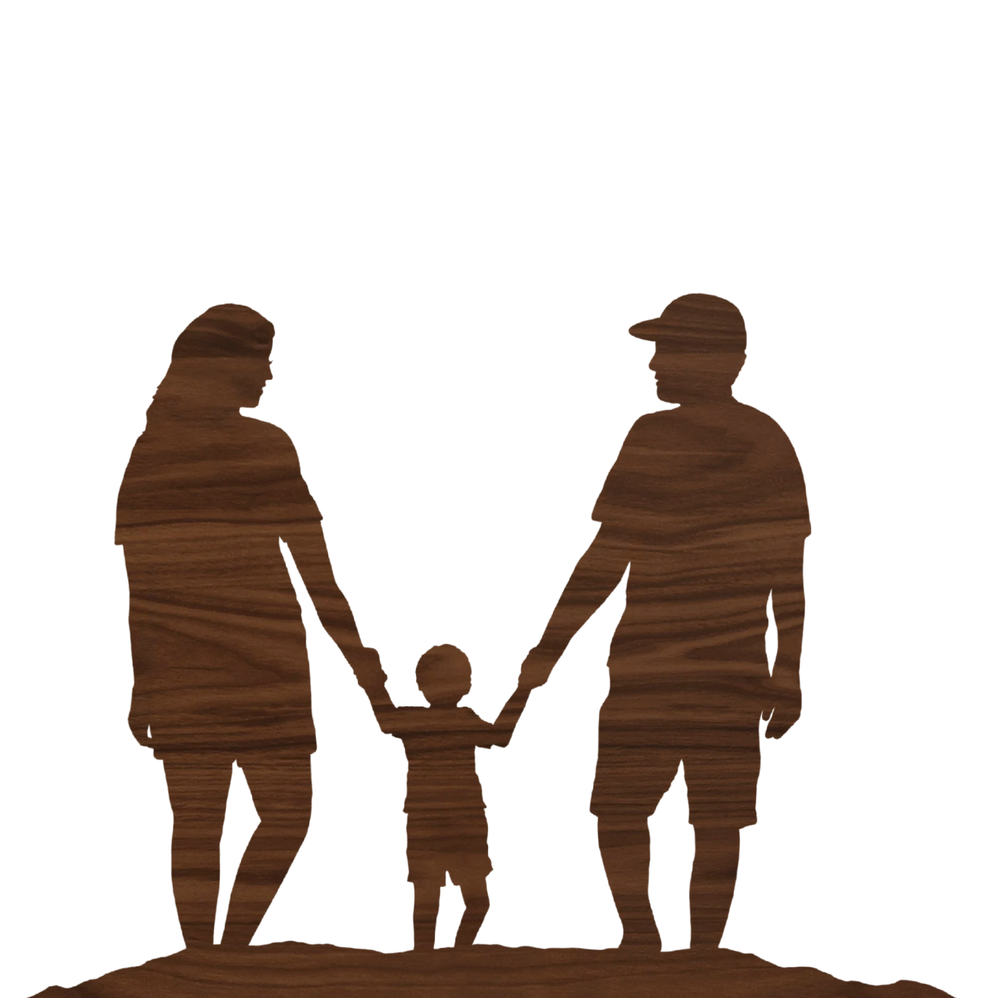 Single 3" hand-drawn, laser-cut walnut silhouette with peel-and-stick backing.
