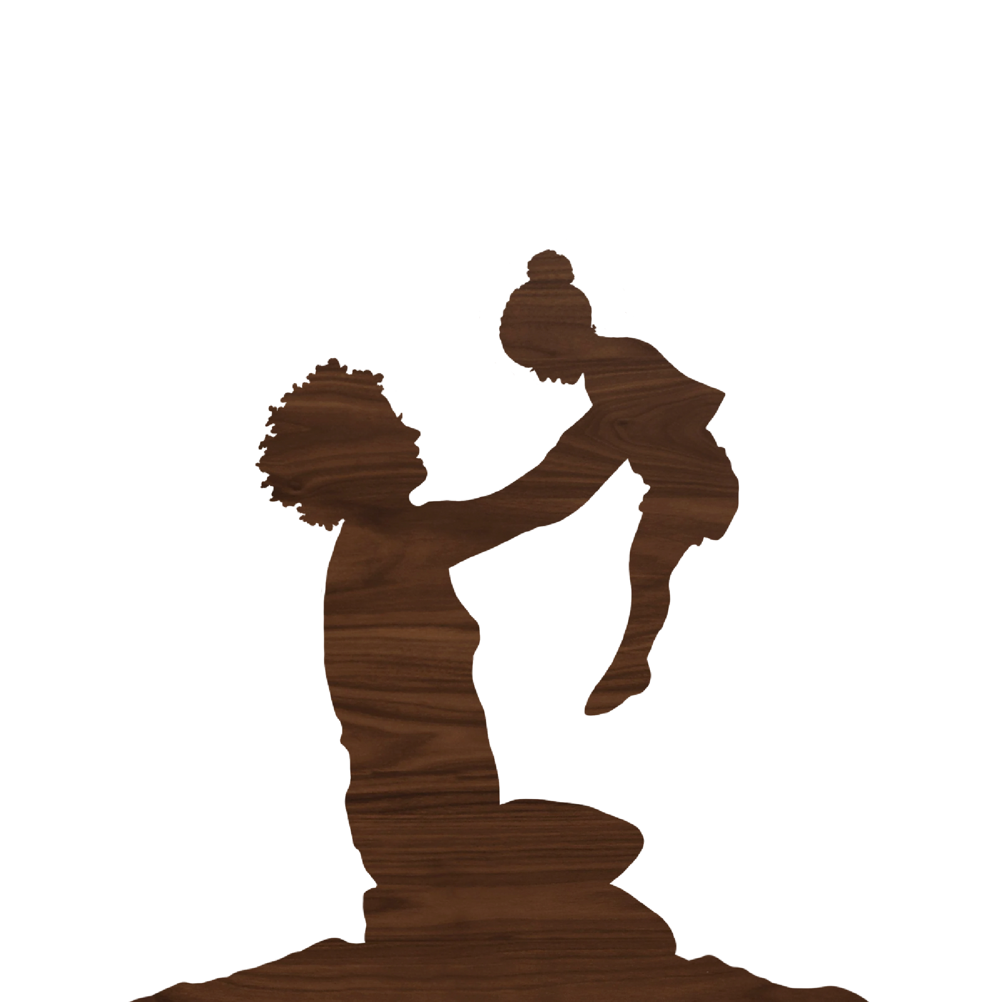 Single 3" hand-drawn, laser-cut walnut silhouette with peel-and-stick backing.