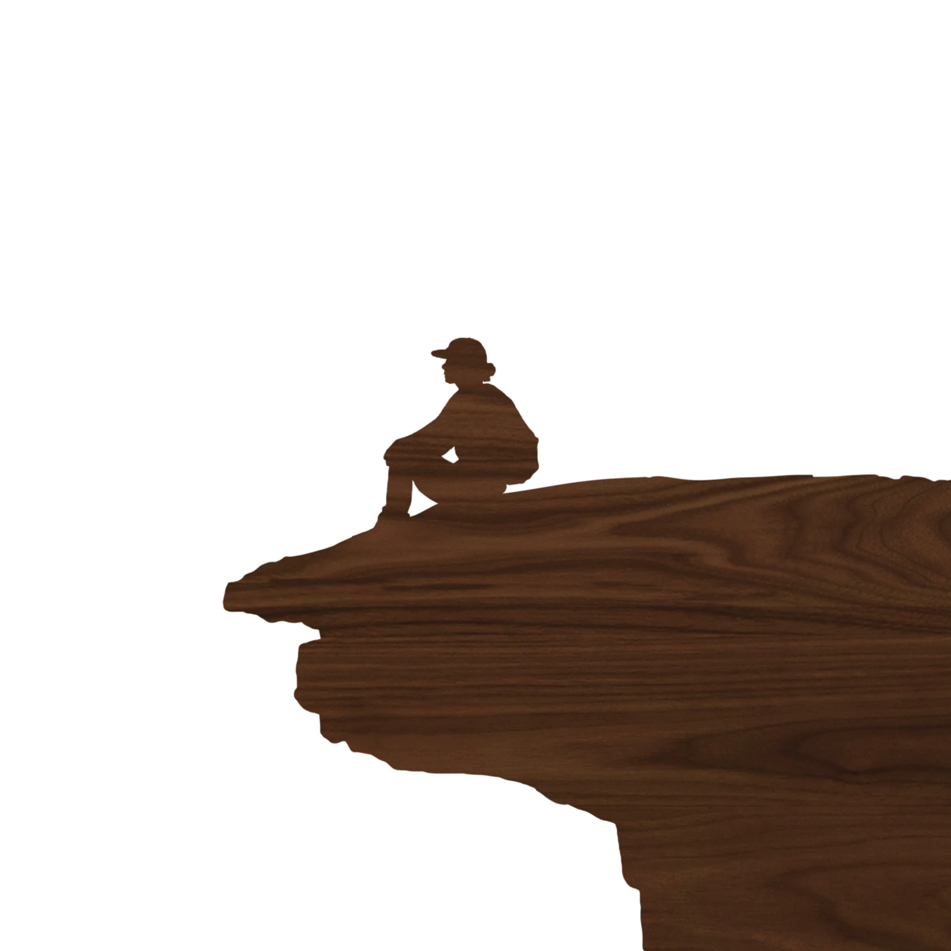 Single 3" hand-drawn, laser-cut walnut silhouette with peel-and-stick backing.