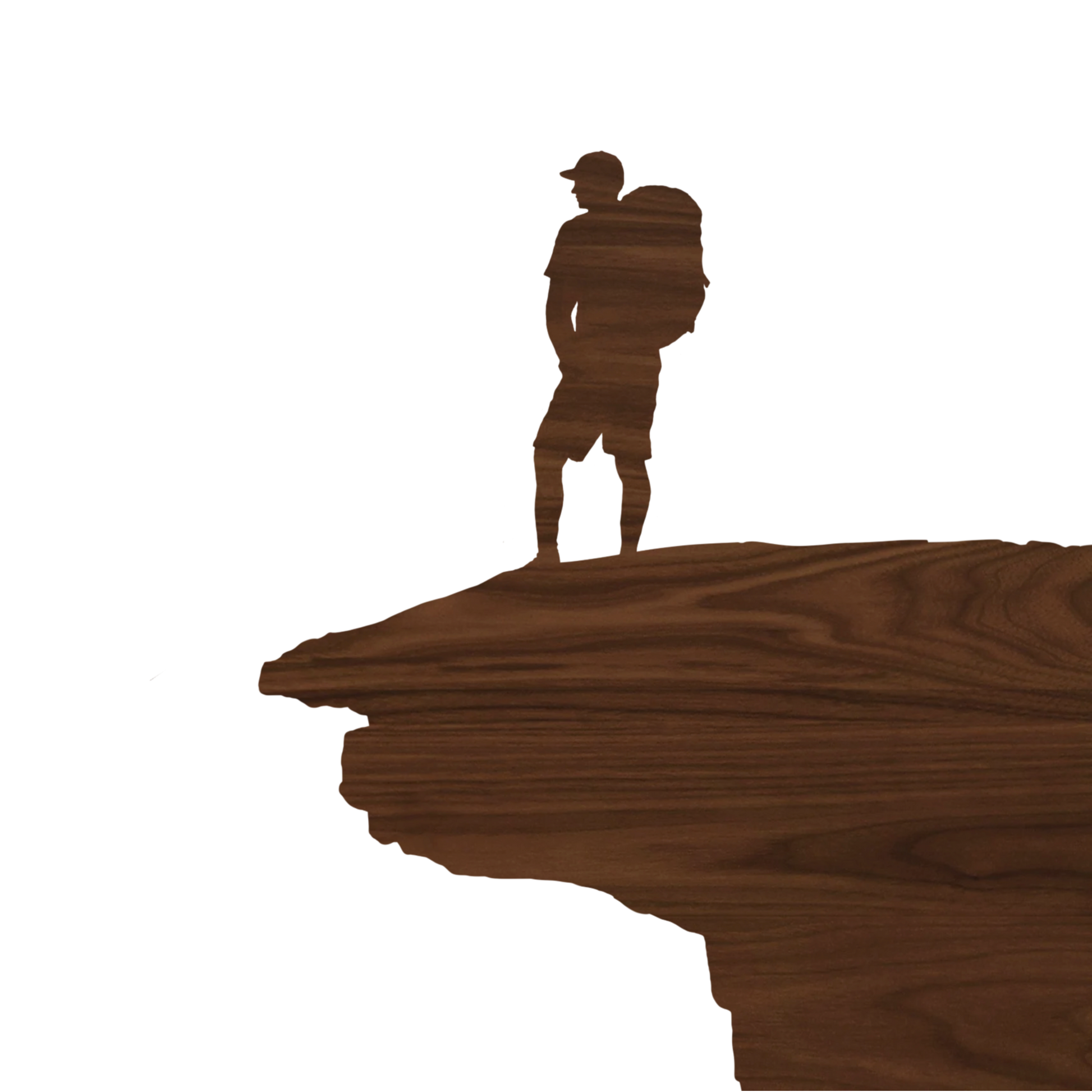 Single 3" hand-drawn, laser-cut walnut silhouette with peel-and-stick backing.