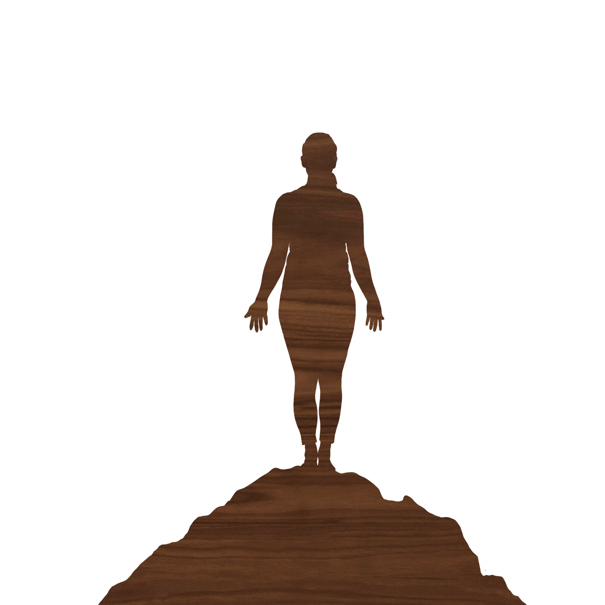 Single 3" hand-drawn, laser-cut walnut silhouette with peel-and-stick backing.
