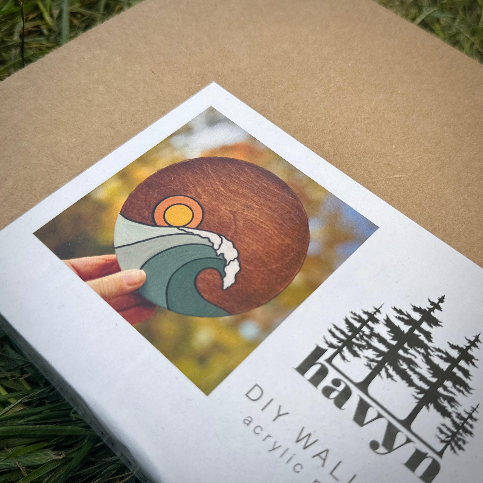 Paint your own gorgeous piece of 6" stained wood art with this kit featuring our "Ombre Wave" plus eight artist quality acrylic paint colors.