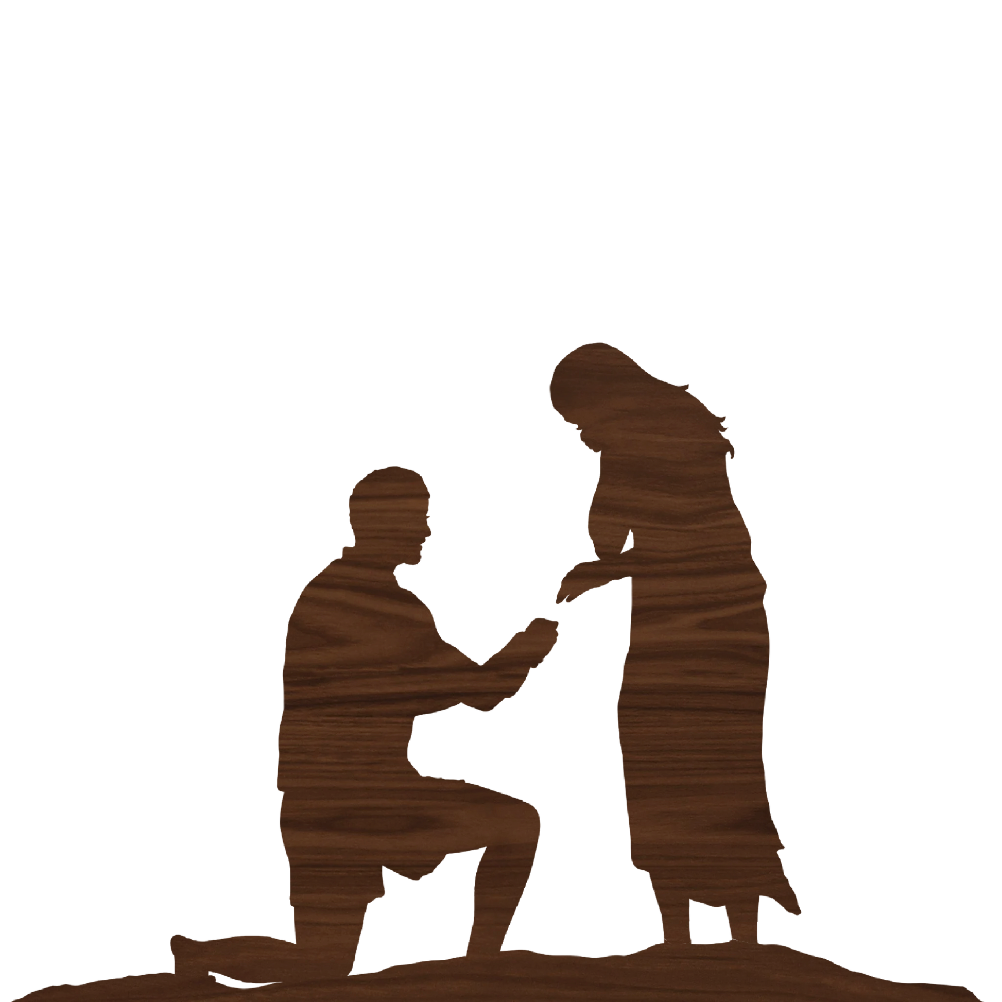Single 3" hand-drawn, laser-cut walnut silhouette with peel-and-stick backing.