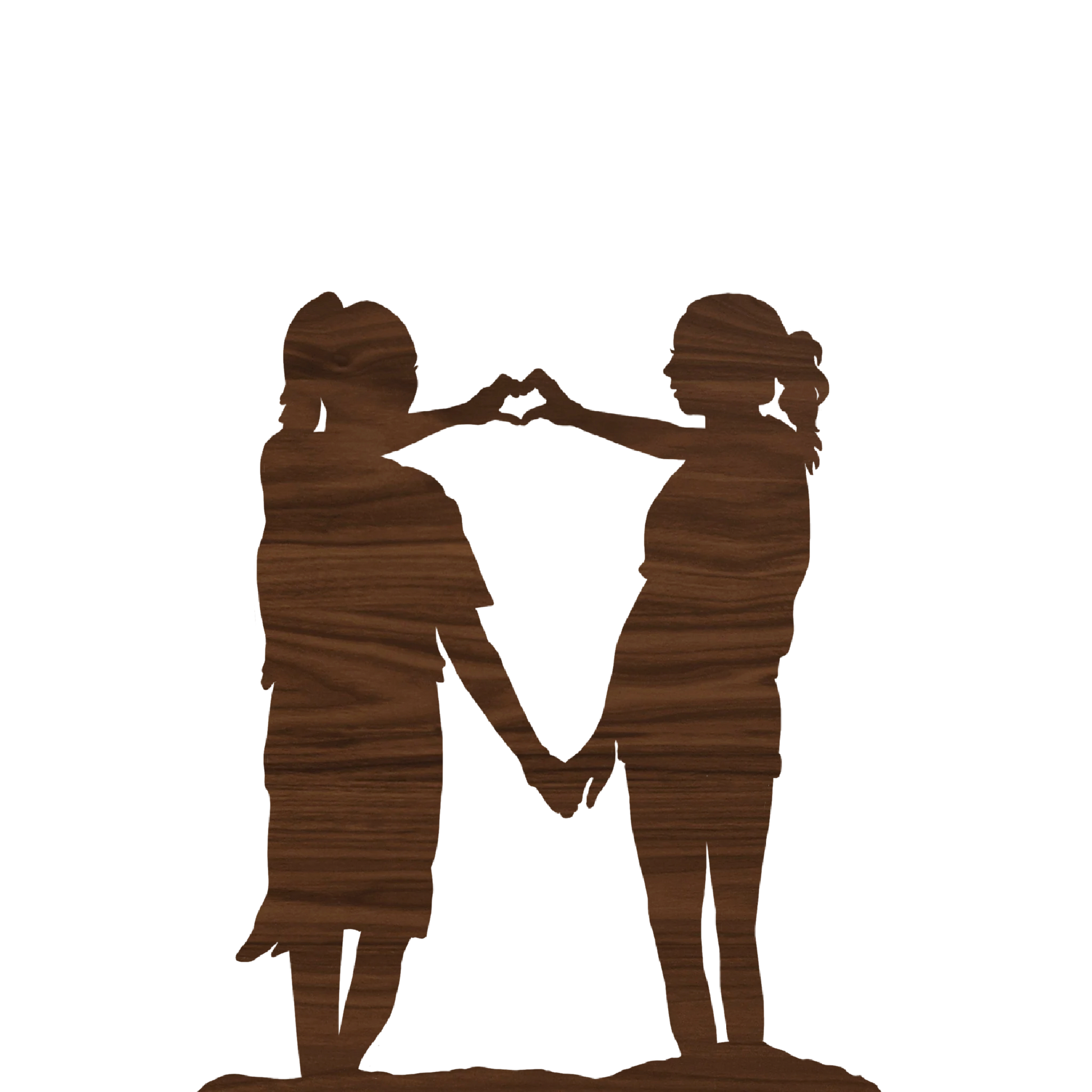 Single 3" hand-drawn, laser-cut walnut silhouette with peel-and-stick backing.