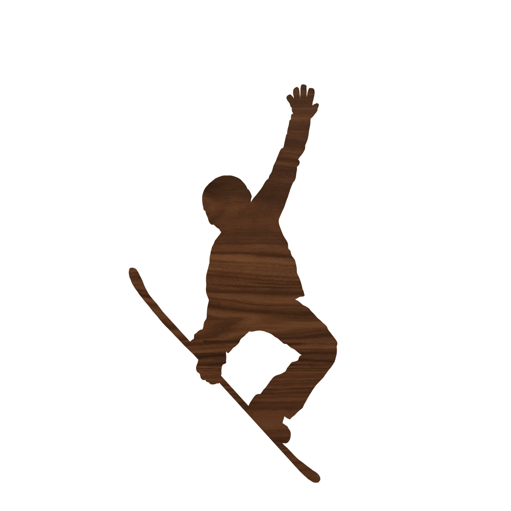 Single 3" hand-drawn, laser-cut walnut silhouette with peel-and-stick backing.