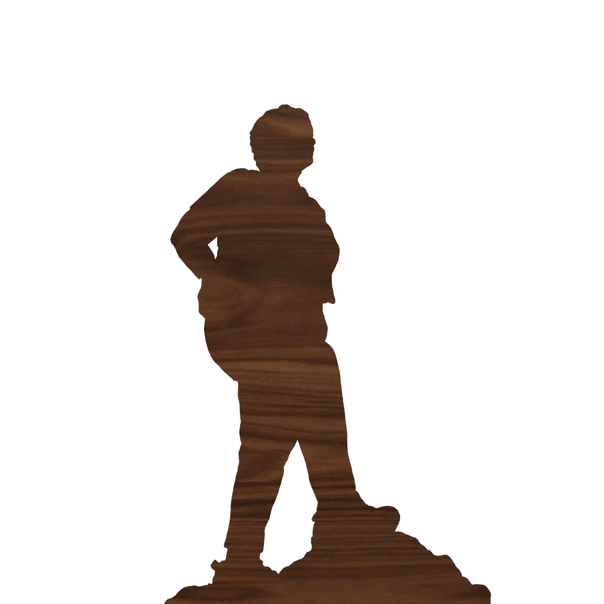 Single 3" hand-drawn, laser-cut walnut silhouette with peel-and-stick backing.