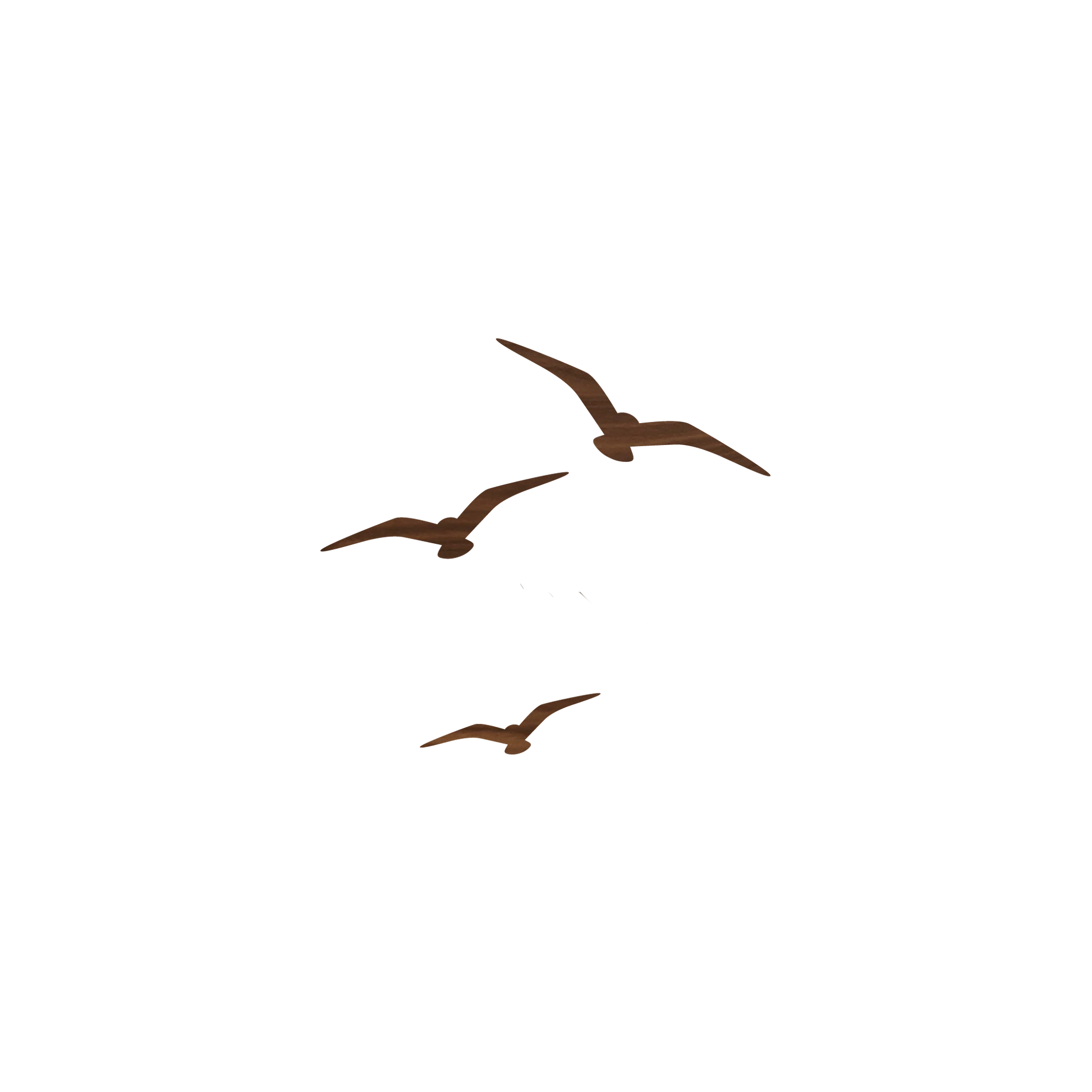 Single 3" hand-drawn, laser-cut walnut silhouette with peel-and-stick backing.