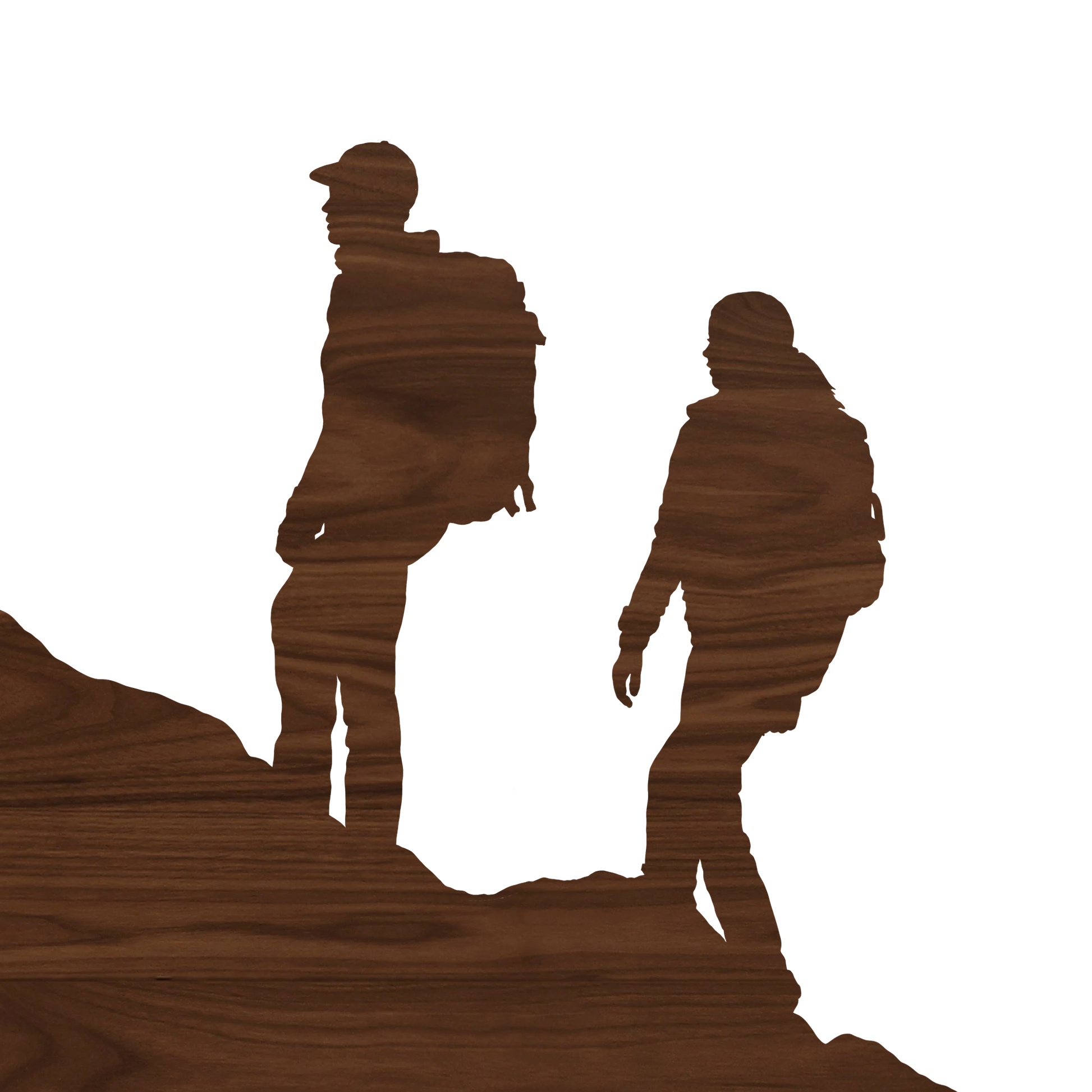Single 3" hand-drawn, laser-cut walnut silhouette with peel-and-stick backing.