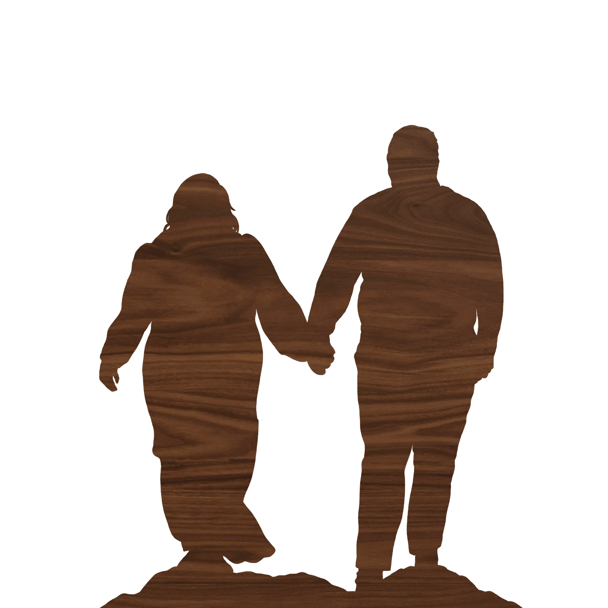 Single 3" hand-drawn, laser-cut walnut silhouette with peel-and-stick backing.